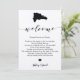 Este cartão moderno e elegante é o símbolo perfeito para as suas bolsas de boas-vindas do hotel. Digite os eventos principais e uma nota personalizada para ajudar seus convidados a navegar no fim de semana.