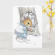 Jack Frost paints the windows with his palette of ice in this charming image by Wallace Tripp for Pawprints Greeting Cards, Inc. Keep the original caption "Season's Greetings," or customize with your own greeting. Illustration c. Wallace Tripp for Pawprints Greeting Cards, Inc.