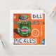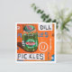 Impressão de arte de um vidro de picles com fundo e texto laranja.