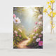 Um caminho sereno se estende através de um campo de florescentes flores cor-de-rosa e brancas do cosmos, levando a um texto de Dentro suavemente iluminado pode ser alterado.
