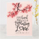 Citação inspiradora de escritura em cartão de felicitações retrata uma fotografia da natureza de um ramo de flores cor-de-rosa em um fundo rosa. Apresenta uma parte de um versículo bíblico encorajador Jeremias 31:3, "Eu vos amei com um amor eterno." A saudação pode ser personalizada ou excluída para uma nota manuscrita e o cartão usado em várias ocasiões. Foto de Patrick Shaun.