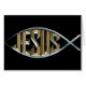 As palavras Jesus em ouro dentro de um símbolo de peixe. frontiernow.com