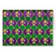 joias, fundo em Mardi Gras de losango roxo e verde, lírios de ouro decorados.
