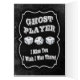 Este é o cartão perfeito para usar-se quando você tem um jogador faltante. Sustente simplesmente este cartão do jogador do fantasma na mesa para ajudar jogadores a recordar rolar os dados para seu amigo faltante. Características de design gráfico um olhar afligida e do vintage. O texto é vista ondulada e espectral. Características três dados de Bunco. O texto lê: Jogador do fantasma, senhorita Você de I, eu desejo que eu estava lá! Excelente para a sua próxima noite de Bunco! Pnha este cartão do jogador do fantasma dentro com suas outras fontes de Bunco.