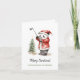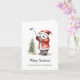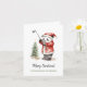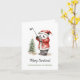 Cartão de Saudação de Natal engraçado para o jogo de golfe Panda. Desenho em aquarela de um lindo urso panda branco em Papai noel de casaco jogando golfe. Texto personalizado.