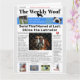 Anime alguém com este cartão de título de jornal engraçado e totalmente personalizável. Altere a redação e o nome/raça do cão para se adequar, bem como a foto principal facilmente. A saudação interna também pode ser alterada dependendo da ocasião, seja para um aniversário, melhoras ou aniversário de casamento, etc