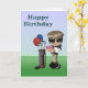 Este cartão de aniversário tem um cartão bonito para um jovem que joga golfe. O gráfico é uma criança adolescente envelhecida com pele escura, segurando um bolo de aniversário e um clube de golfe com balões. Você pode editar o texto do dentro.
