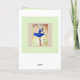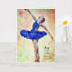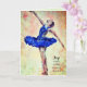 Cartão de escritura "Joy vem de manhã" (todas as palavras e fontes podem ser alteradas). Ballerina em azul contra um fundo cor-de-rosa suave e creme.