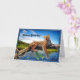 Luxuriant leopard lounges on a branch before a sunlit background scene. Features blue kaleidoscopic frame. Customize your own message!