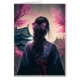 Gera computador Design einer Geisha em einem Kirschblüten Wald. Abbildung einer Frau mit einer hübschen Zopffrisur und Blüten im Haar welche einen Kimono trägt. Japoneses Design im AI Stile. Sou Hintergrund zwei Japanische Gebäude.