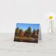Kayak on a pond in autumn, scenic, blank note card. The shore is lined with beautiful fall foliage in this sunny, seasonal photography print.