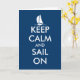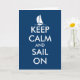 Keep calm and sail on greeting card | Nautical theme. Cute card for sailing and boating enthusiasts. Personalizable quote. Create your own keep calm and carry on parody. Navy blue and white sailing ship / sailboat logo.