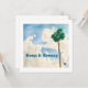 Art print of clouds and a palm tree with text.