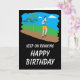A colorful Birthday card for the Athlete or fun runner.Featuring a man running in the country on a bright clear day. Set against a grass and sky back ground and then on a contrasting black background the simple message "Keep On Running, Happy Birthday" is spelt out in white. Put you own special Good Luck message inside.