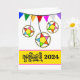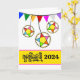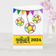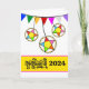 Khmer cambojano Ano Novo, Choul Chnam Thmey recebe cartão em papel com decorações de estrelas de bambu acopladas a um revestimento triangular colorido. Adicione uma data, altere a data no cobrir como quiser. Personalize o dentro verso conforme necessário, Art, image e verse copyright © Shoaff Ballanger Studios, 2024.