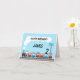 O cartão de aniversário deste menino apresenta um trem vermelho, azul e amarelo giro em fundo azul e marrom. Eu fui inspirado por designs de tecido para crianças e ilustrações de livros para este design. A cor é clara e a imagem é simples. O cartão de aniversário do trem deste garoto é particularmente adequado para uma festa de aniversário de tema do trem. É ideal para uma rua ou segundo aniversário, mas pode ser usado para diferentes idades. O mesmo convite de design e outros itens estão disponíveis na loja.