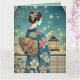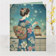 Este cartão de saudação maravilhosamente desenhado apresenta uma mulher graciosa vestida em um quimono de verão adornada com delicados padrões florais, evocando o calor e charme da estação. Ela levemente segura uma pequena gaiola de insetos, olhando para os vagalumes brilhantes que iluminam o tranquilo céu noturno. Este cartão é perfeito para festas de temas japoneses, saudações sazonais, ou qualquer pessoa que aprecie a beleza serena da estética japonesa tradicional. Com o seu apavorante sentimento Zen, ele faz um presente atencioso e elegante para qualquer ocasião.
