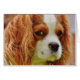Fotografia de um Rei Charles Spaniel parecendo muito sério e talvez um pouco aborrecido.