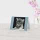 Um adorável gatinho felpudo de um desenho de quadro de riscos. Obrigados a Angels Rescuing Kritters por salvar este pequeno e seus colegas de cama e por proporcionar um futuro brilhante encontrando um lar para sempre para ele. Este cartão tem um fundo azul que corresponde aos olhos do gatinho.
