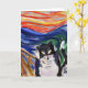 A lighthearted comical tribute to the stress of life. The swirling sky and sea capture the haywire moment when you realize that you just lost any illusion or hope of control. Inspired by Edvard Munch's, "The Scream." Rendered in gouache.