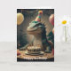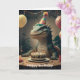 Cartão Komodo Dragon sentado na mesa com bolo de aniversá