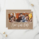 Cartão de Anúncio de Noivado Kraft Salve Nossa Data com Foto Casal Madeira Rústica com Script Pincel Moderno 3