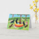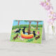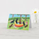 Cartão de Labradores para os fãs do Labrador! Engraçado Labrador Retriever Piscina e Quadro de Diversão de Verão. Labrador Preto e Labrador de Chocolate e Labrador Amarelo estão todos pintados na foto. Cães felizes e fofos do Labrador Retriever estão brincando no jardim com a piscina e a água de uma criança. Cena de verão colorida e alegre com laboratórios. Pintado por Naomi Ochiai do Japão.
