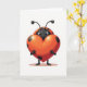 This greeting card shows a cute ladybug character centered on a plain white background, holding a big heart close to its body. The ladybug has a shiny red shell with black spots, a small black face, and wide eyes that look friendly, with a soft little smile. The heart it’s hugging is a rich red-orange color with a glossy look, and it even has a few black spots that match the ladybug’s back. Its thin black arms and tiny hands wrap around the heart like it’s giving a careful, sweet hug. A light shadow under its feet helps ground the character and keeps the scene simple and focused on the message. There isn’t any text on the front, so the picture does all the talking and leaves room for your own note inside ❤️💌. Send it with a kind message and a little chocolate spirit 🍫