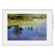 Eu amei tudo nesta imagem - os azuis e os verdes, as almofadas de lírio redondas e a grama spiky do lago, e especialmente as reflexões das árvores e das nuvens brancas na água.