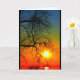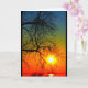 Um pôr do sol laranja, dourado e azul vibrante do lago, fotografado através de galhos de árvores, é o assunto do meu cartão "Lake Winnebago Sunset Thinking Of You". Eu capturei esta cena ao longo da costa do lindo lago Winnebago em Quinney, Wisconsin.