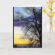 Um céu roxo, azul e dourado sobre um lago calmo, com uma árvore majestosa em torre no primeiro plano, é o assunto do meu cartão "Pensando em Você". Eu fotografei este lindo pôr do sol ao longo da linha costeira do lindo lago Winnebago em Quinney, Wisconsin.