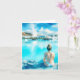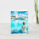 Este cartão apresenta um retrato de aquarela de uma mulher loira que ignora a laguna azul na Islândia.