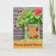 Este cartão é projetado com uma pequena pintura encostada a um vaso de flores de verão. As palavras na pintura dizem "Onde Problemas Derretem Como Gotinhas de Limão". Acho que o cenário faz um cartão de Nova Casa ou cartão de boas-vindas perfeito. As palavras podem ser facilmente personalizadas para diferentes ocasiões.