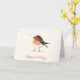 NewParkLane - Um cartão de aniversário simples, mas com uma pequena aquarela europeia Robin Redbreast em diferentes tons de marrom, laranja e branco, e um 'Parabéns' desejam uma elegante tipografia de roteiro em laranja queimado. Adicione seu desejo de aniversário no dentro. Todos os textos podem ser facilmente editados, assim como fonte, tamanho de fonte e cores, para um design personalizado.