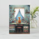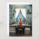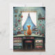 Cartão Laranja Quirky Cat em uma janela Hello Flat