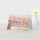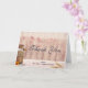 Cartão de agradecimento para casamento ou outra festa, evento, ocasião, etc... Com um tema rústico country. Uma velha lata de leite enferrujada com uma linda flor amarela ao lado. Trigo e flores rosa desbotadas ao fundo contra um painel de madeira tênue.