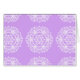 Esta mandala branca senta-se sobre um fundo roxo claro. A cor é feminina e sofisticada. Parte da Coleção Rosenn Mandala.