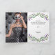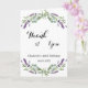 Um fundo branco, decorado com lavanda, flores violetas e verde de eucalipto. Dentro: 1rua das suas fotos, tamanho vertical. Sua nota de agradecimento. Traseiro: segundo das suas fotos, tamanho da paisagem.