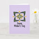 Designed with a soft lavender background, this digital artwork centers on a symmetrical botanical emblem that feels like spring flowers opening toward one another with a gentle, affectionate closeness ❤️. A deep forest-green frame curls into four petal-like arms, each tipped with lighter olive leaf accents that add a tender, caring touch. Inside that frame, stylized leaves and petals radiate in a balanced pattern, alternating bright lime green and warm golden yellow like two friends sharing attention back and forth. Four small yellow diamond shapes sit at the top, bottom, left, and right of the central motif, adding a calm, steady rhythm to the layout 🌼. The main message, “Happy Mother’s Day,” is placed beneath the emblem and written in flowing black lettering. The lavender field stays airy and soft so the greens and yellows stand out without feeling harsh. The central design reads like a tile-inspired floral medallion with curved green petals, lime-and-gold inner leaves, and four yellow diamonds marking the cardinal points.