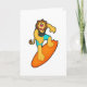 Cartão Leão como Surfista com Prancha de Surfe