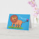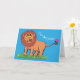 Cartão Leão feliz com ilustração de desenho animado de bo