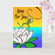 Leap for Joy, cartão de saudação de papel com um sapo saltando de um lírio de água. Mande um pouco de alegria, alegria e encorajamento com este brilhante e colorido design. Arte, imagem e direitos de autor versos © Shoaff Ballanger Studios, 2022.