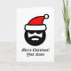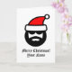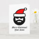 Legal desenho do Papai Noel, Feliz Cartão de Feliz Natal. design de Feriado para amigos e família. Cartas personalizadas para crianças e adultos. Adicione sua própria mensagem personalizada no dentro e envie este cartão real diretamente do Zazzle para o destinatário on-line. Fundo personalizado e cor do texto. Cartão de sobredimensionamento muito grande disponível também. Também em outros tamanhos. Papais noeis grossos com óculos escuros e barba preta.