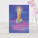 Este cartão sincero, criado em memória de um marido amado no seu primeiro Dia dos Pais na eternidade, emana um profundo sentimento de conforto e reverência. A imagem captura uma única vela radiante, simbolizando a luz eterna da sua memória. Tons suaves de azul e roxo em aquarela criam um cenário sereno, evocando uma sensação de paz para a viúva sozinha. A frente ostenta uma caligrafia elegante, lembrando suavemente a sua presença e fé eternas, confortando o coração com o seu tom religioso e cristão.