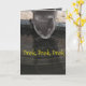 Cartão de aniversário engraçado com um gato cinza, com um lembrete de envelhecer. Personalize o texto para se adequar a qualquer ocasião especial.