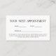Este cartão de lembrete de compromisso apresenta um layout profissional elegante que é funcional e na moda. A frente tem um design de cartão de visita clássico com fundo preto sólido e fontes brancas, usando uma mistura de roteiro elegante e tipografia serif clássica. Suas informações de contato são exibidas claramente, fazer fácil para os clientes contatá-lo. As flores pretas, cinzas e creme adicionam um toque sutil de charme sem distrair o sentimento limpo e moderno. O verso do cartão tem um fundo branco com texto e linhas pretos, criando um espaço simples para escrever na data e hora do próximo compromisso do cliente. Ele foi projetado para ser fácil de ler e prático para uso diário. Perfeito para salões, spas, profissionais de beleza, planejadores de casamento ou qualquer negócio baseado em serviços. Todo o texto, fontes e cores podem ser personalizados para corresponder à sua marca.