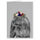 Cartão Leoa Leão Animal Menina Coroa de Flores Preto Bran