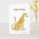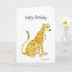 Colorful illustration of a leopard on front of card and inside there are paw prints clear across the bottom of the card.