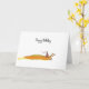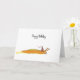 Um cartão de aniversário com uma ilustração de uma lesma indo a uma festa.
