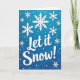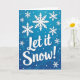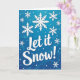 This digital illustration captures the joyful spirit of winter, getting you excited for the holidays. The main focus is the phrase "Let it Snow!" in elegant white script, standing out against a cool background with a subtle drop shadow. The backdrop transitions smoothly from light blue to deep indigo, with delicate swirling patterns like frosted glass. White snowflakes of different sizes and designs float around, from large intricate shapes to tiny stars and dots, creating a playful snowfall effect. The mix of typography, textures, and snowflake shapes tell a heartwarming winter story with a magical feel. This card is perfect for spreading holiday cheer and embracing the cozy winter season. 🎅🏼🎄🎁